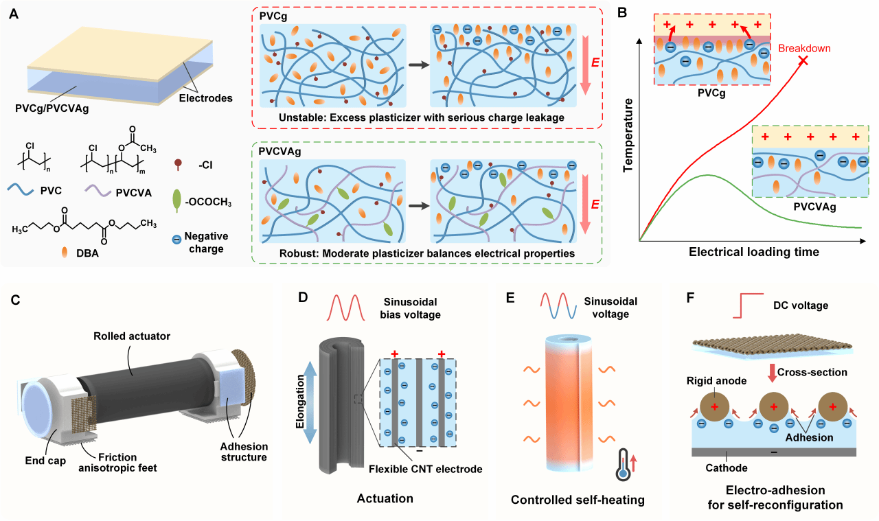 2025-08近日,我院空天结构技术重点实验室张卫红院士团队与香港城市大学吕坚院士、香港理工大学王钻开教授合作,在软体机器人领域取得了新进展,成功开发出一种基于新型电活性聚合物的多功能机器人,有望满足复杂结构和极寒环境下的应用需求。该研究成果以“Vinyl Acetate-Enhanced Polyvinyl Chloride Gel with High Electroadhesion and Self-Heating-Tunability for Soft Robots i...