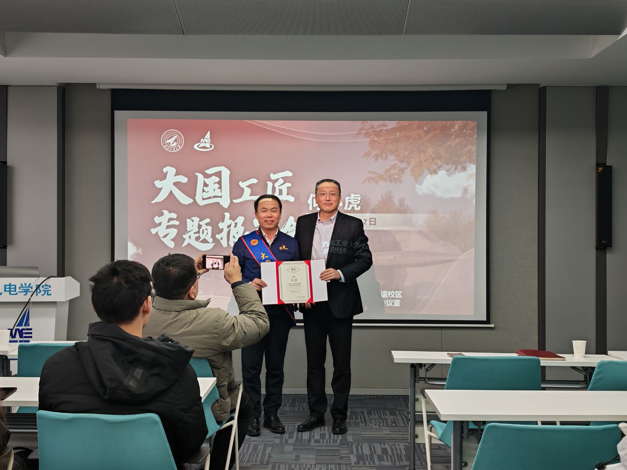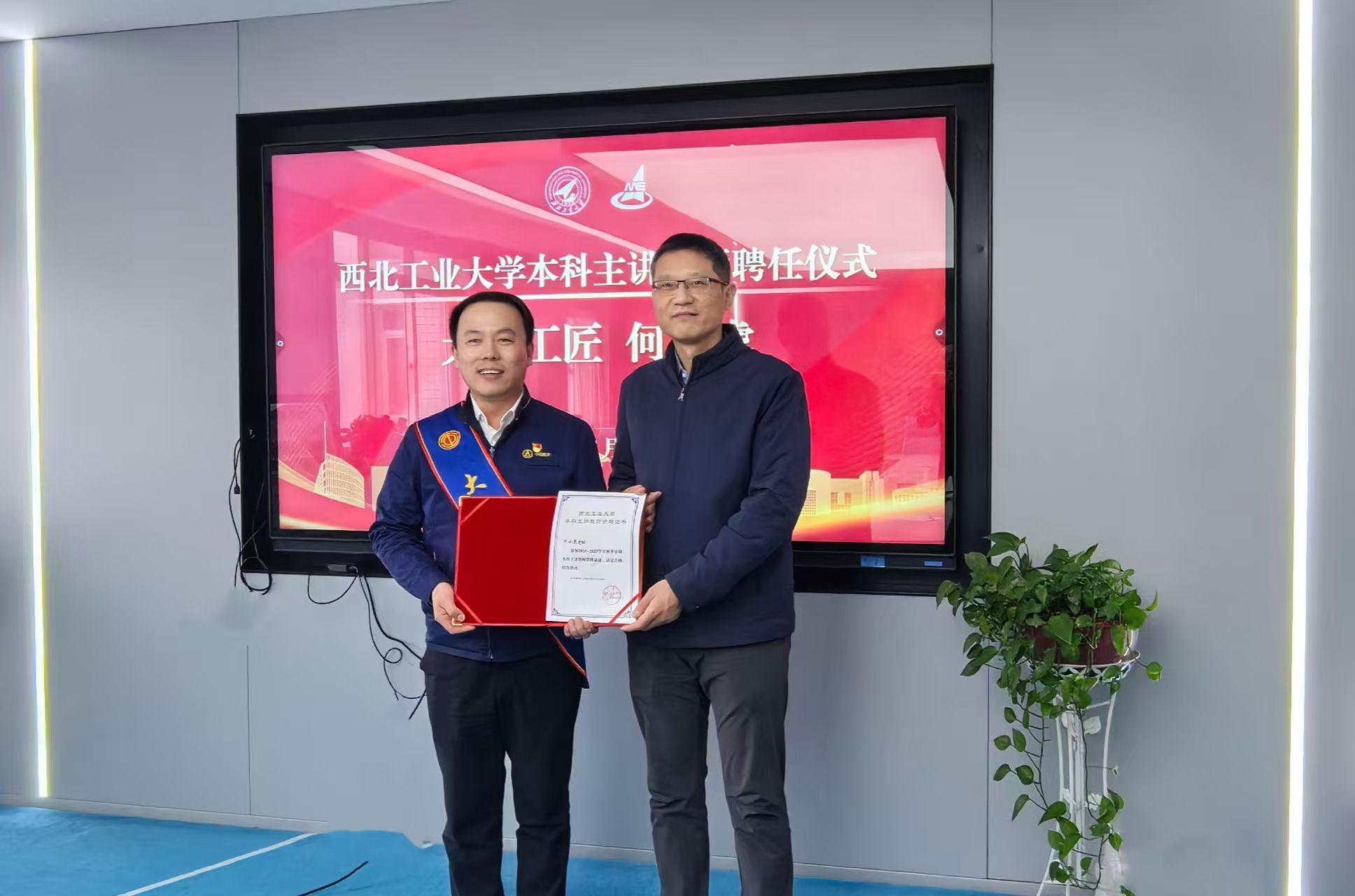 常洪龙院长为“大国工匠”何小虎颁发hg8868皇冠官方登录平台本科主讲教师聘书。他表示,面向制造强国、发展新质生产力对“总师型”人才的迫切需求,学院打造“中国飞行器总制造师的摇篮”这一育人品牌备受认可,而提升智能制造人才的培养质量是学院发展的关键部分。能够拥有一线制造经验丰富的“大国工匠”为学生授课专业知识,将“机械制造”与“工业美学”深度融合,是高效的、创新的教学理念和育人模式,为学院培养更多“总师型”拔尖智能制造人才提质增效。