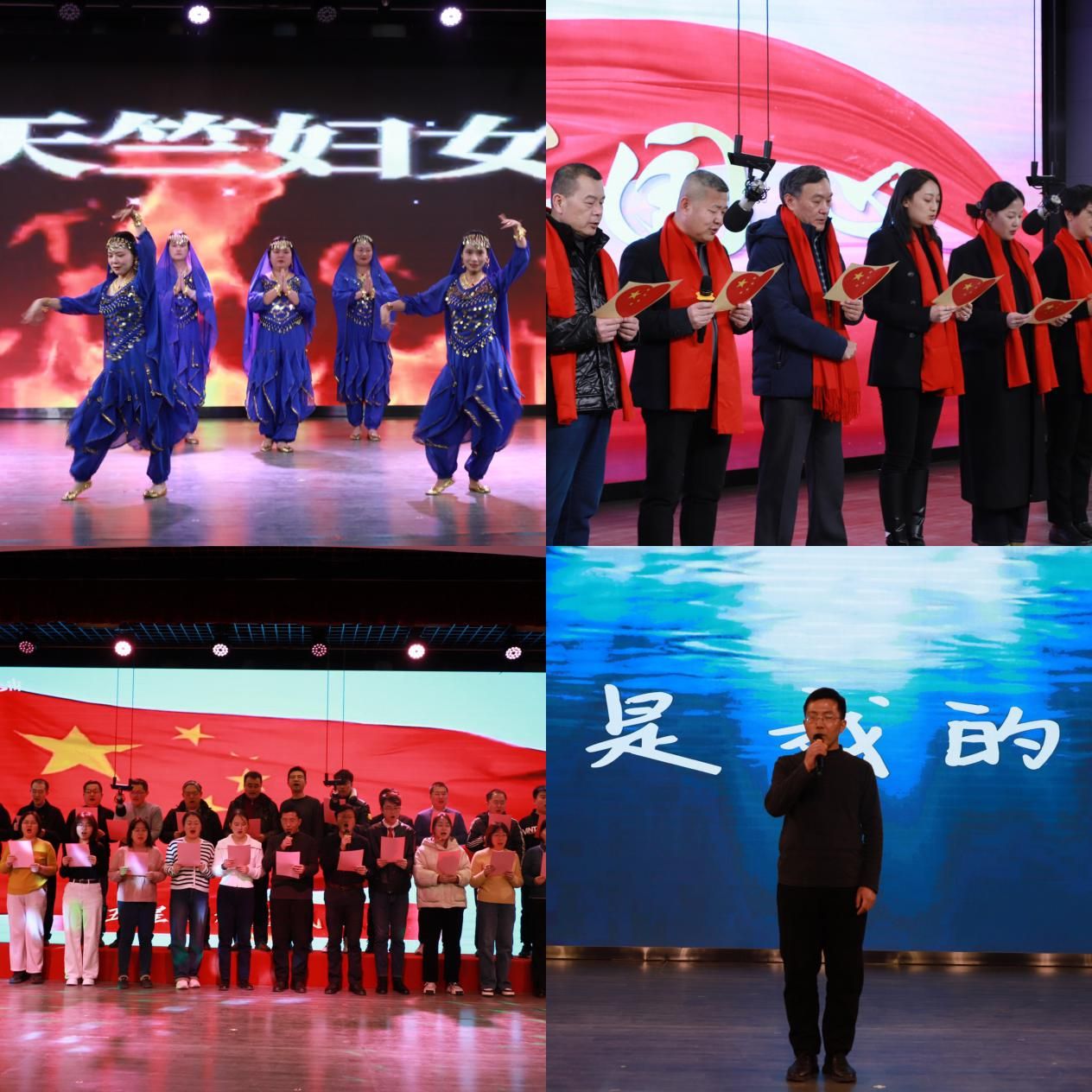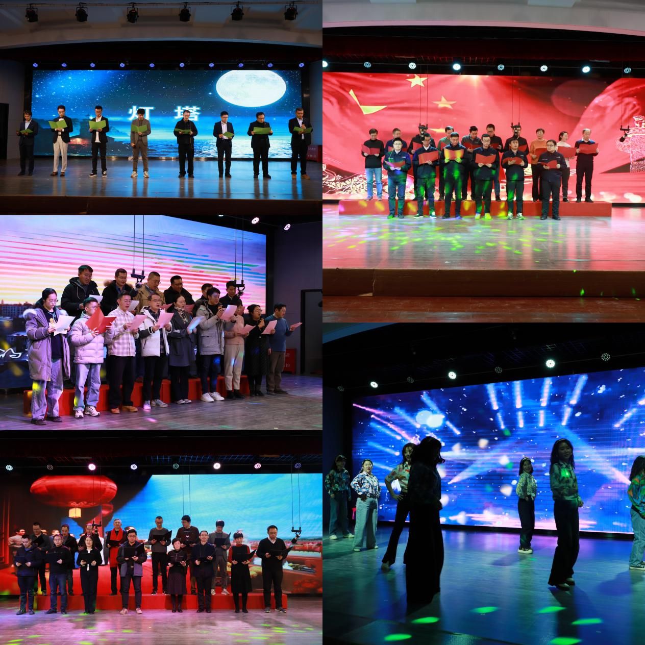 航空发动机高性能制造重点实验室用一首长诗《百年航空报国志,仰天长啸中国心》拉开了整场大会的序幕,声情并茂的朗诵展示出学院在航空领域的深厚底蕴与报国情怀。院机关带来的《复古歌曲串烧》舞蹈用耳熟能详的韵律、极具动感的舞姿调动起整场大会的气氛,学研一体化实验教学中心的舞蹈《天竺妇女》为整场大会增添了几分异域风情。机械工程及自动化系、微系统工程系、工业工程系以及工业设计系带来了精心准备的歌曲——《明天会更好》、《我们走在大路上》、《我的中国心》、《歌唱祖国》和《你是我的眼》,情感真挚、绕梁三尺。新进青年教职工也踊跃上台,为大家表演了诗朗诵《灯塔》,深情地表达了青年人的热爱与坚守,同时,ppt形式的自我介绍,为大家展示了青年教职工的风采。