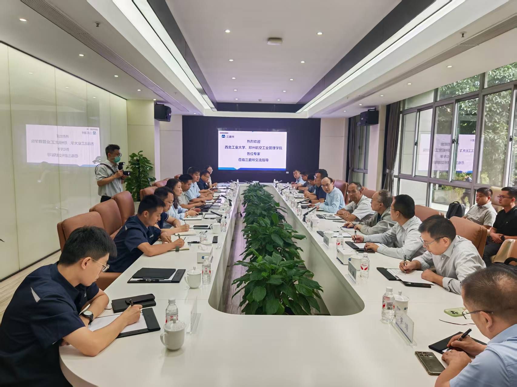 调研团队首先参观了相关研发生产现场,深入了解了科研生产一线的相关发展需求和瓶颈问题。随后,调研团队与相关单位进行了详细座谈交流。罗明对相关单位的热情接待表示感谢,并介绍了西工大学院师资队伍、人才培养以及在三航相关领域的研究成果及最新进展,希望双方以此次交流为契机,围绕我国国防制造领域重大需求,从科研平台建设、国家重大项目申报、关键技术攻关、研究生人才培养等方面开展紧密合作,充分发挥双方优势资源,力争做出更大贡献。相关单位介绍了有关情况,双方就后续健全沟通和人员互访机制,开展务实合作进行了详细交流。