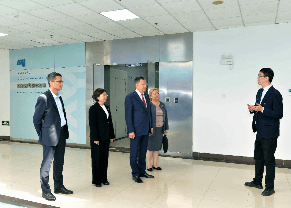 5月18日上午,“阿里·法拉比”哈萨克斯坦国立大学(以下简称阿里·法拉比大学)校长图伊梅巴耶夫·詹森特·坎森图雷一行莅临学院访问。hg8868皇冠官方登录平台副校长张艳宁、学院院长常洪龙、代表教师任森、苑曦宸以及国际合作处人员陪同参观。