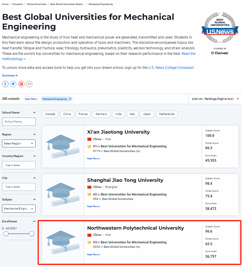 近日,《U.S. News 2024-2025年世界大学学科排名》正式发布,我校机械工程学科在世界大学学科排名中位列全球第三,相较去年有大幅提升,学科特色更加鲜明、综合实力显著增强、国际声誉和影响力进一步提高。